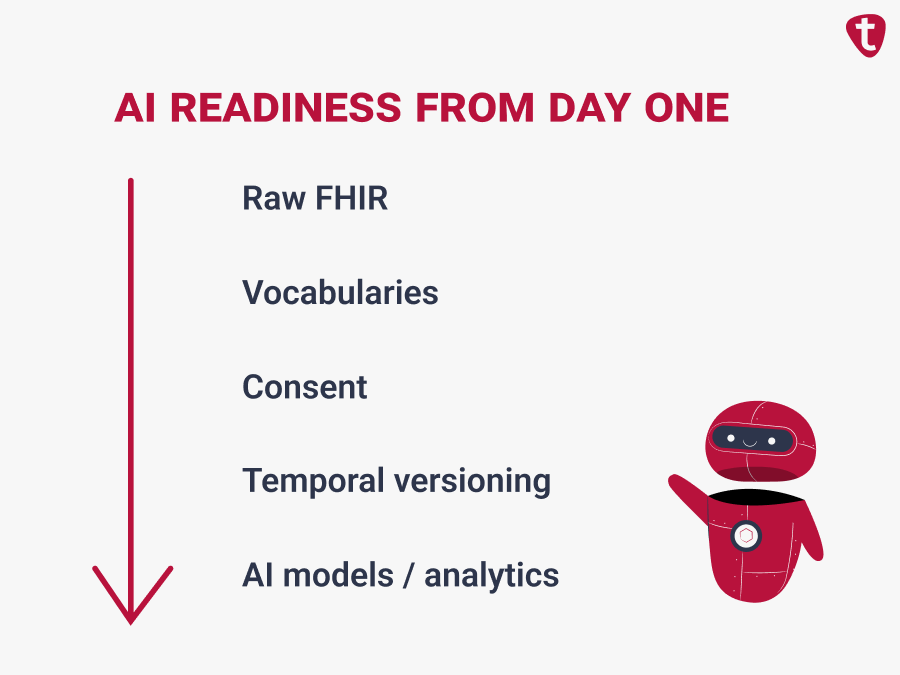 • AI models need relationships and history, not just single FHIR resources – medications linked to diagnoses, labs tied to encounters, and longitudinal records.
