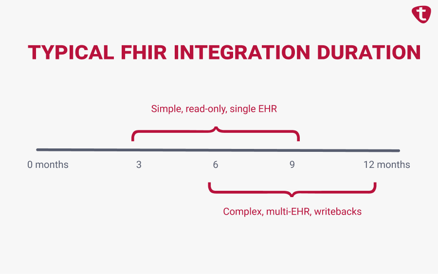 Simple, read-only, well-scoped work with a cooperative customer can land in a few months. Anything involving writebacks, multiple EHRs, or hospital security reviews will stretch to 3–12 months. The biggest variable isn’t the FHIR spec – it’s how quickly the health system moves.
